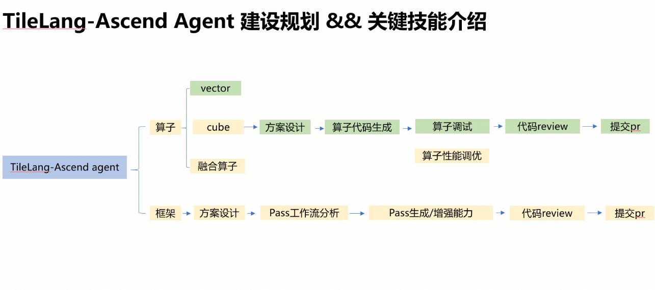 重点围绕TileLang-Agent展开,详解其核心能力及使用技巧,展示Agent如何贯穿算子开发全流程。同时梳理算子开发关键skill,包括方案设计、代码开发与验证、代码Review模块,覆盖从设计到落地的核心环节。