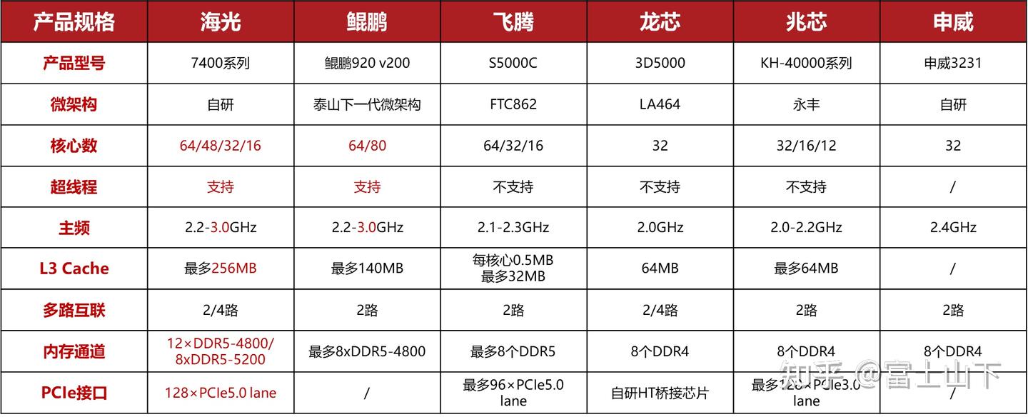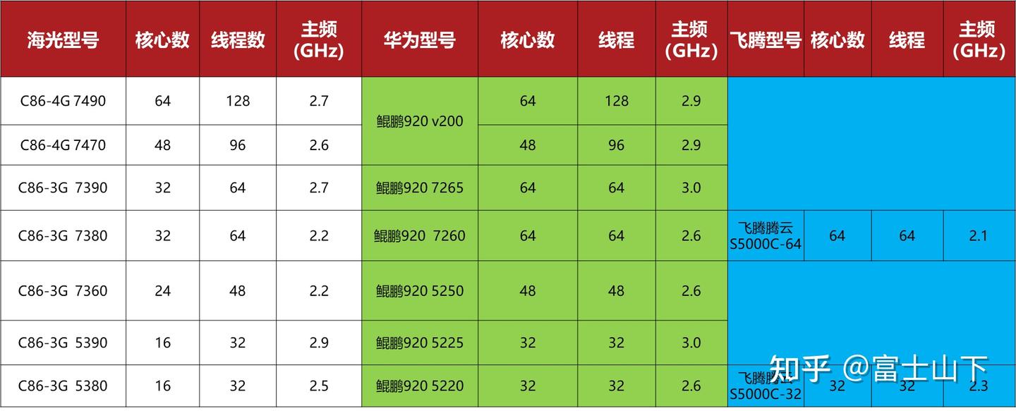 代际对位原则:1、海光C86-3G :鲲鹏920 :飞腾S2500及S5000系列;2、海光C86-4G :鲲鹏920 V200