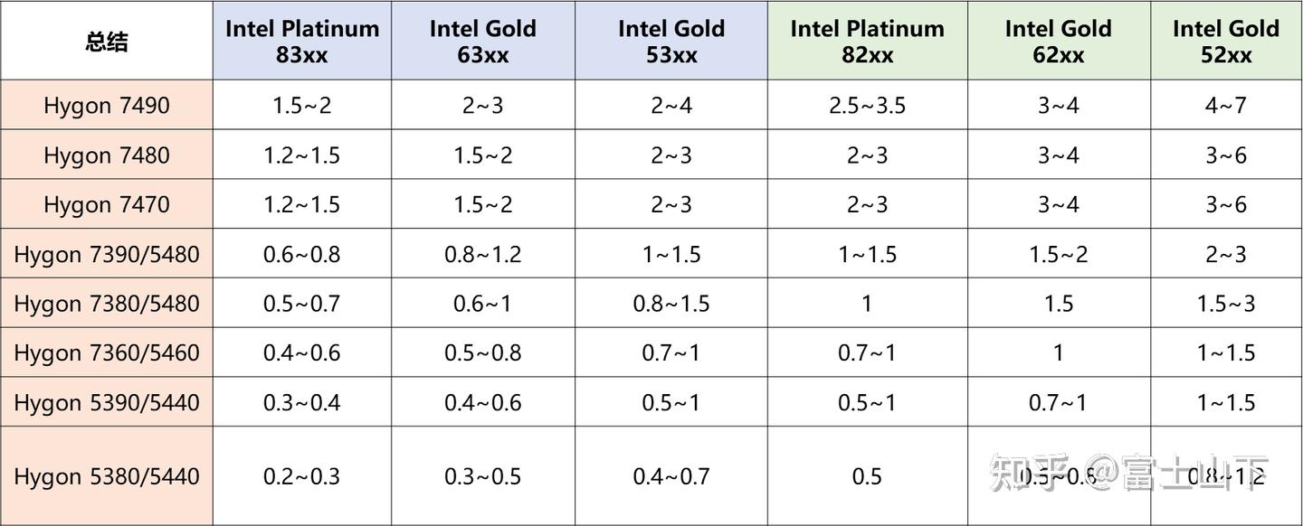 七、海光与Intel替代比例推荐表