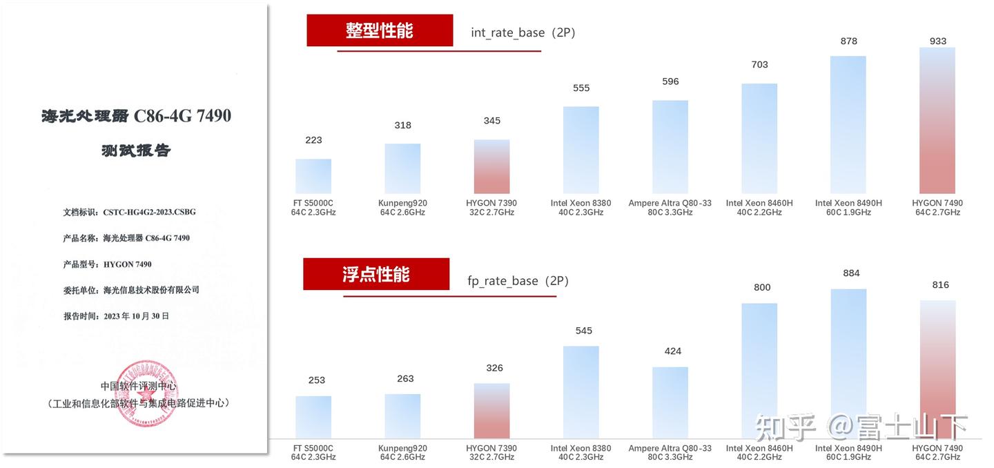 非海光数据来源于 SPEC 组织全球发布值;海光数据来自第三方权威认证报告